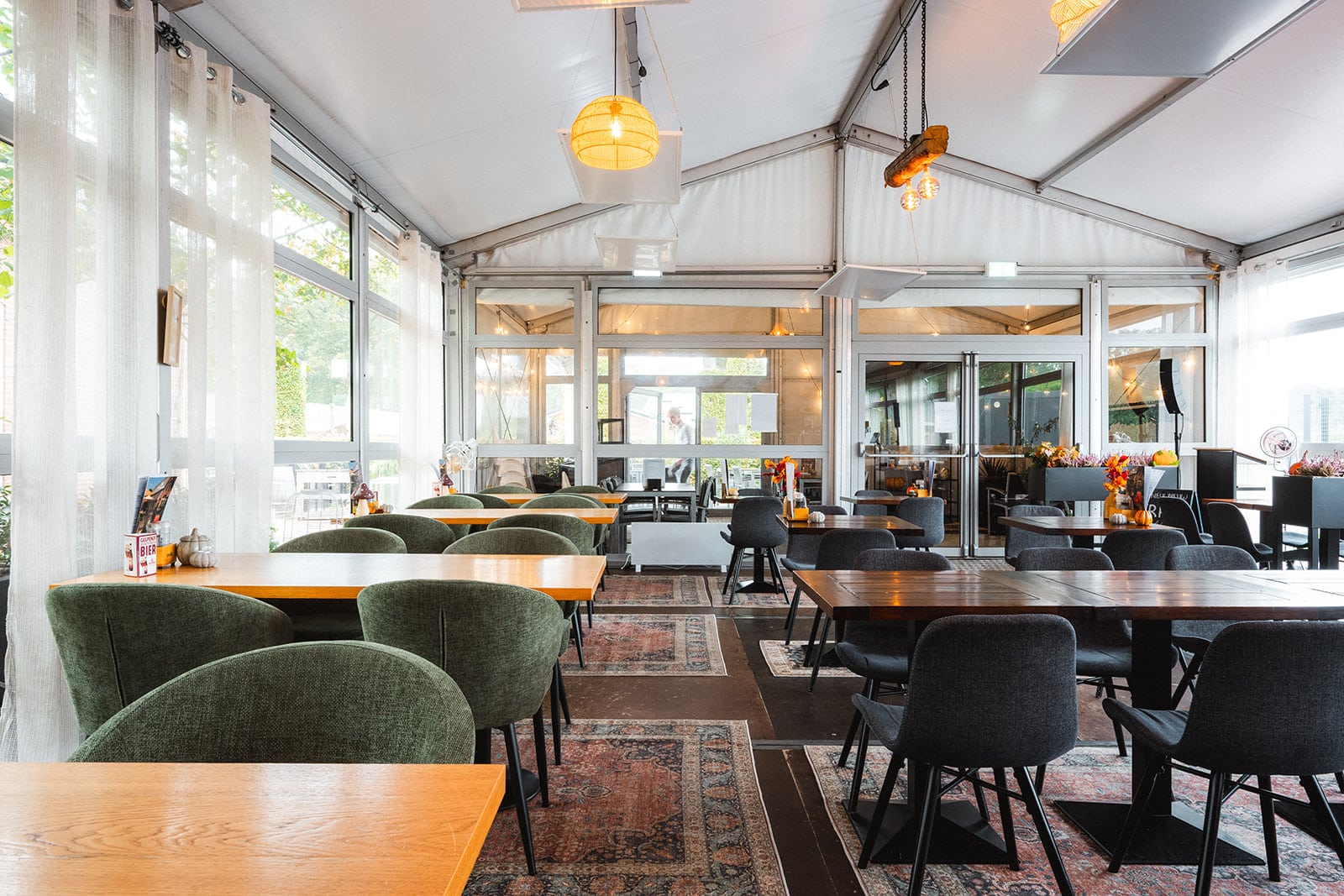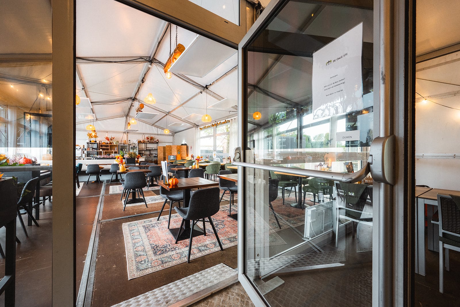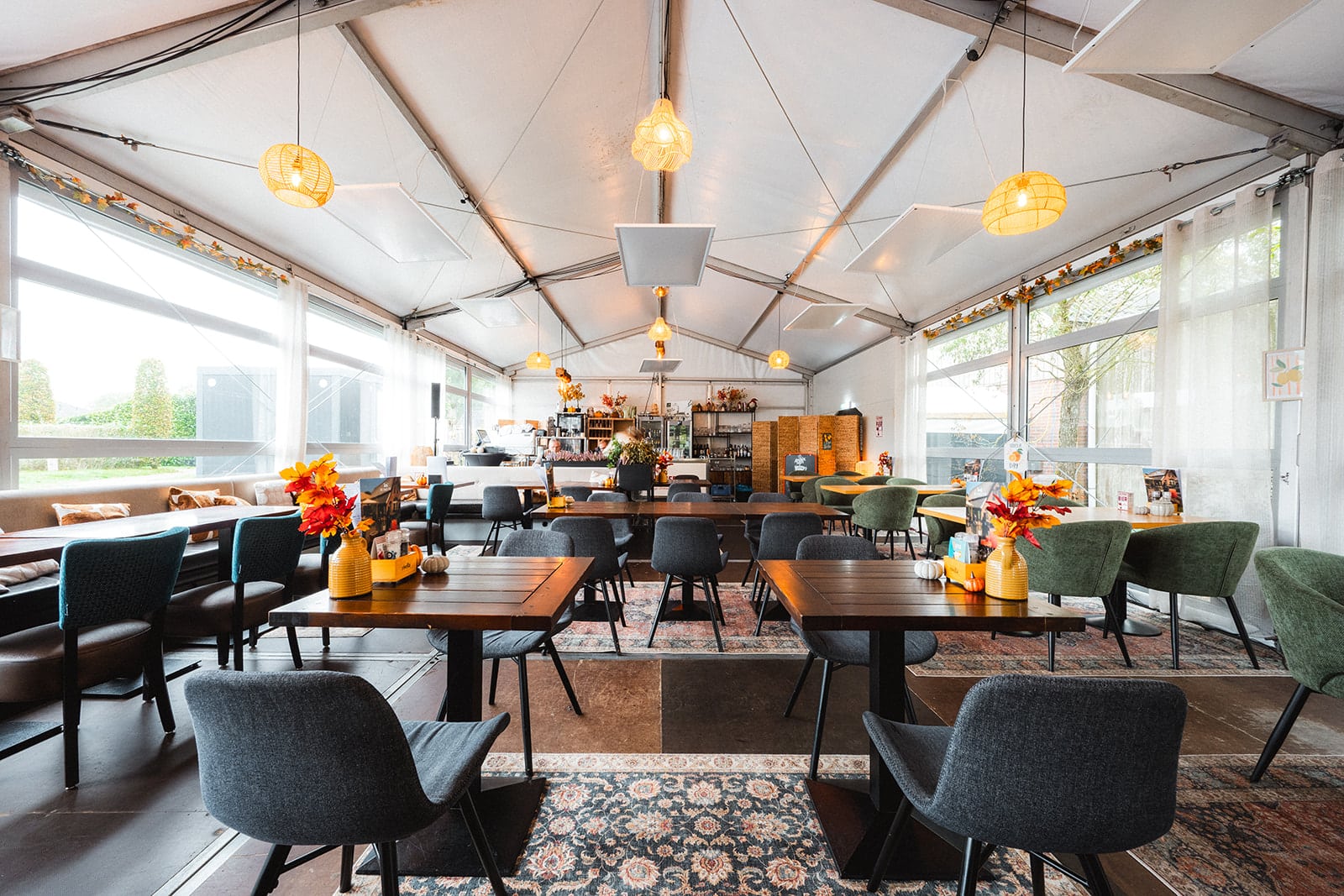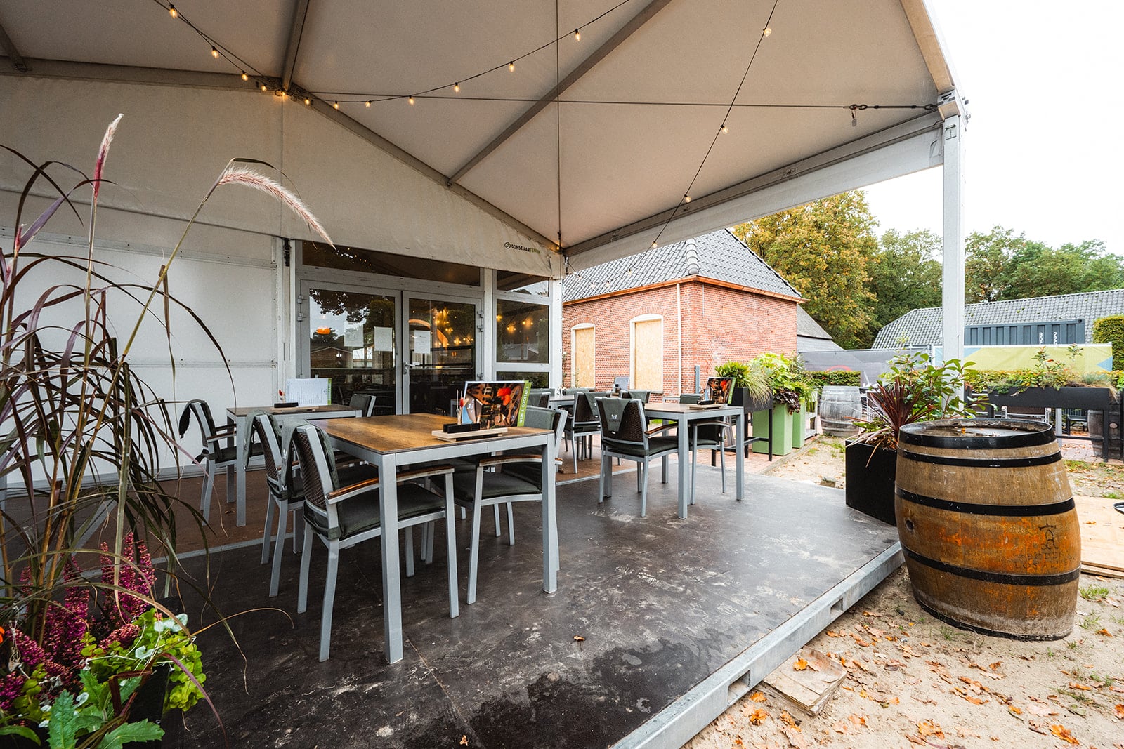 Na de brand bij Bistro de Oale Ste ontstond er direct behoefte aan een nieuwe plek om gasten te kunnen ontvangen. We hebben in korte tijd een volledig geïsoleerde T4 tenthal (12,5 x 30 x 3 m) gebouwd die fungeert als tijdelijke horecaruimte, compleet ingericht om het restaurant weer draaiende te krijgen zonder in te leveren op comfort of uitstraling.