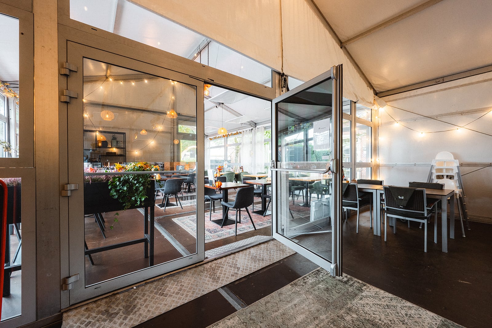 De hal is uitgevoerd met harde glaswanden, een ISO-dak en een zwaarlastvloer voor een solide en stabiele basis. Daarnaast plaatsten we een extra tussengevel met glaswanden en een dubbele loopdeur, zodat de routing en beleving optimaal aansluiten bij de wensen van het restaurant.