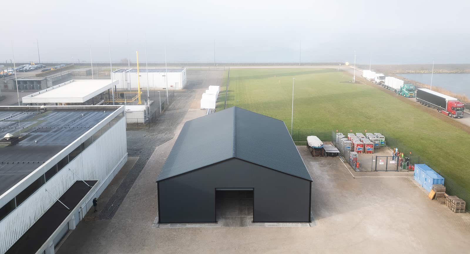 Voor de Maxima-centrale in Lelystad leverden we een volledig geïsoleerde T5 Flexhal van 17 x 22 meter, met een zijwandhoogte van 5 meter. Op deze strategische locatie in het IJsselmeer exploiteert ENGIE twee van de meest geavanceerde STEG-eenheden ter wereld. De Flexhal speelt hierin een essentiële rol: onderdelen van de energiecentrale kunnen er veilig en onder alle weersomstandigheden worden opgeslagen én gereviseerd. De hal sluit daarmee naadloos aan op de technische en operationele eisen van deze hightech energievoorziening