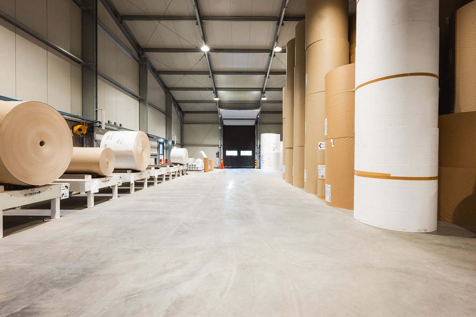 Voor Smurfit WestRock Zedek realiseerden we een T5 Flexhal die volledig is ingericht als tijdelijke expeditie- en opslagruimte. De klant groeit hard en had dringend extra ruimte nodig voor inkomende materialen, zoals grote rollen karton. Een belangrijke eis: de hal moest condens- en vochtvrij zijn. Door de keuze voor een geïsoleerde Flexhal met 60 mm PIR-panelen is dit volledig gegarandeerd.
