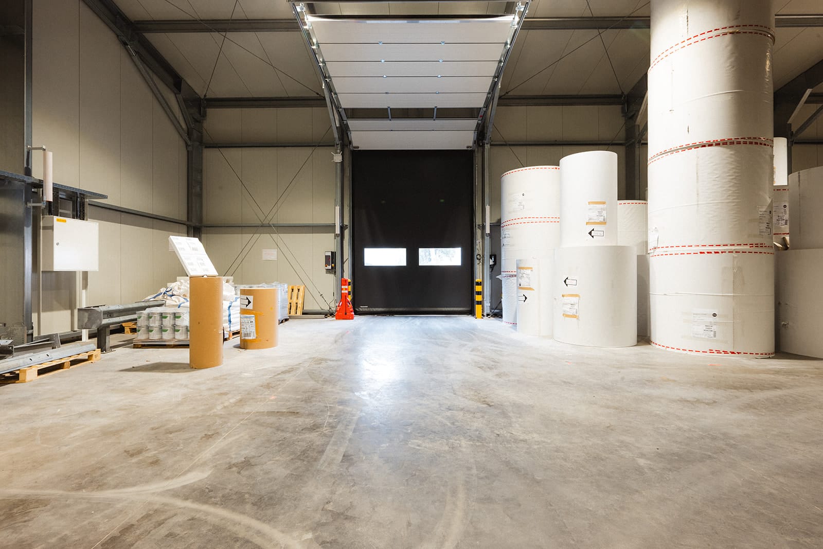 Binnen het project werkten we nauw samen met de betonconstructeur, zodat er een vloer kwam die geschikt is voor AGV’s (Automatisch Geleide Voertuigen). Hierdoor kon de Flexhal direct op de juiste ondergrond geplaatst worden. Ook hebben we automatische snelroldeuren geïntegreerd, zodat de AGV’s volledig autonoom kunnen blijven werken.