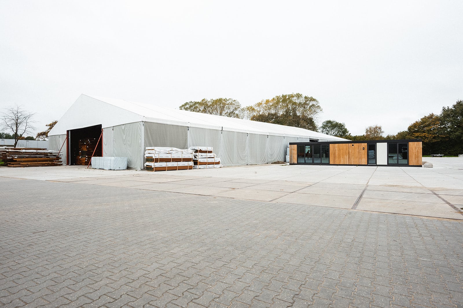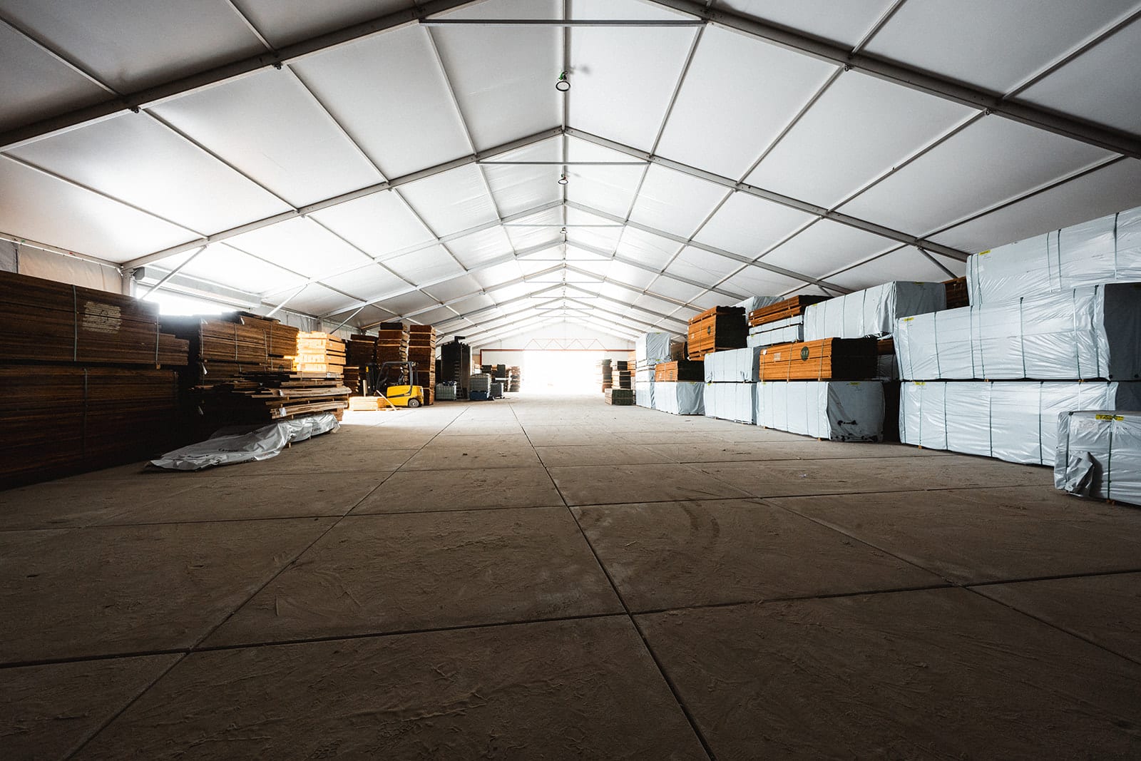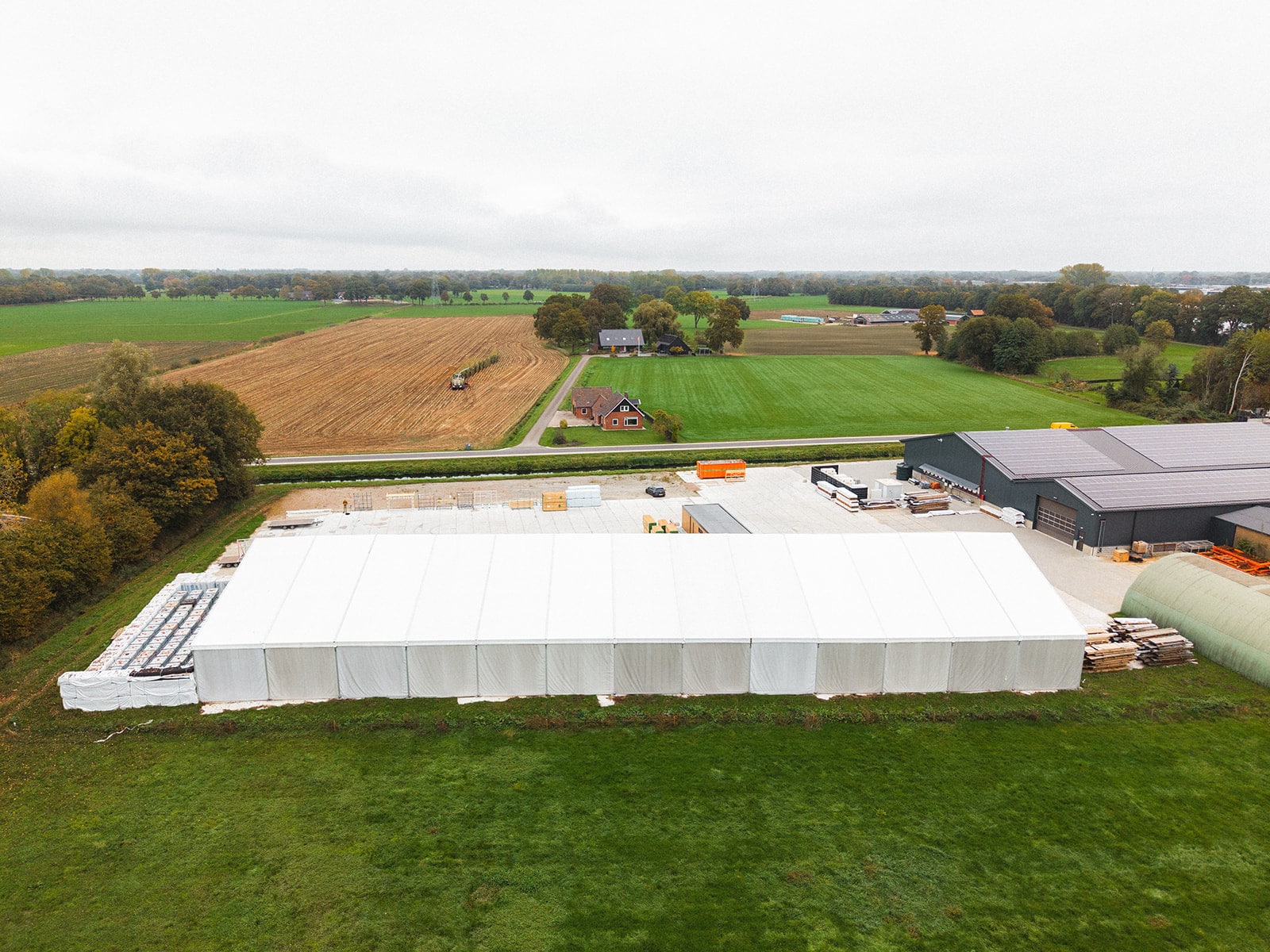 Bij Thermino plaatsten we een T2-tenthal als tijdelijke opslagruimte. Een flexibele oplossing die snel inzetbaar is en precies aansluit bij de logistieke behoefte van het bedrijf. De aluminium constructie biedt voldoende hoogte en bescherming, zodat materialen veilig en droog opgeslagen kunnen worden.