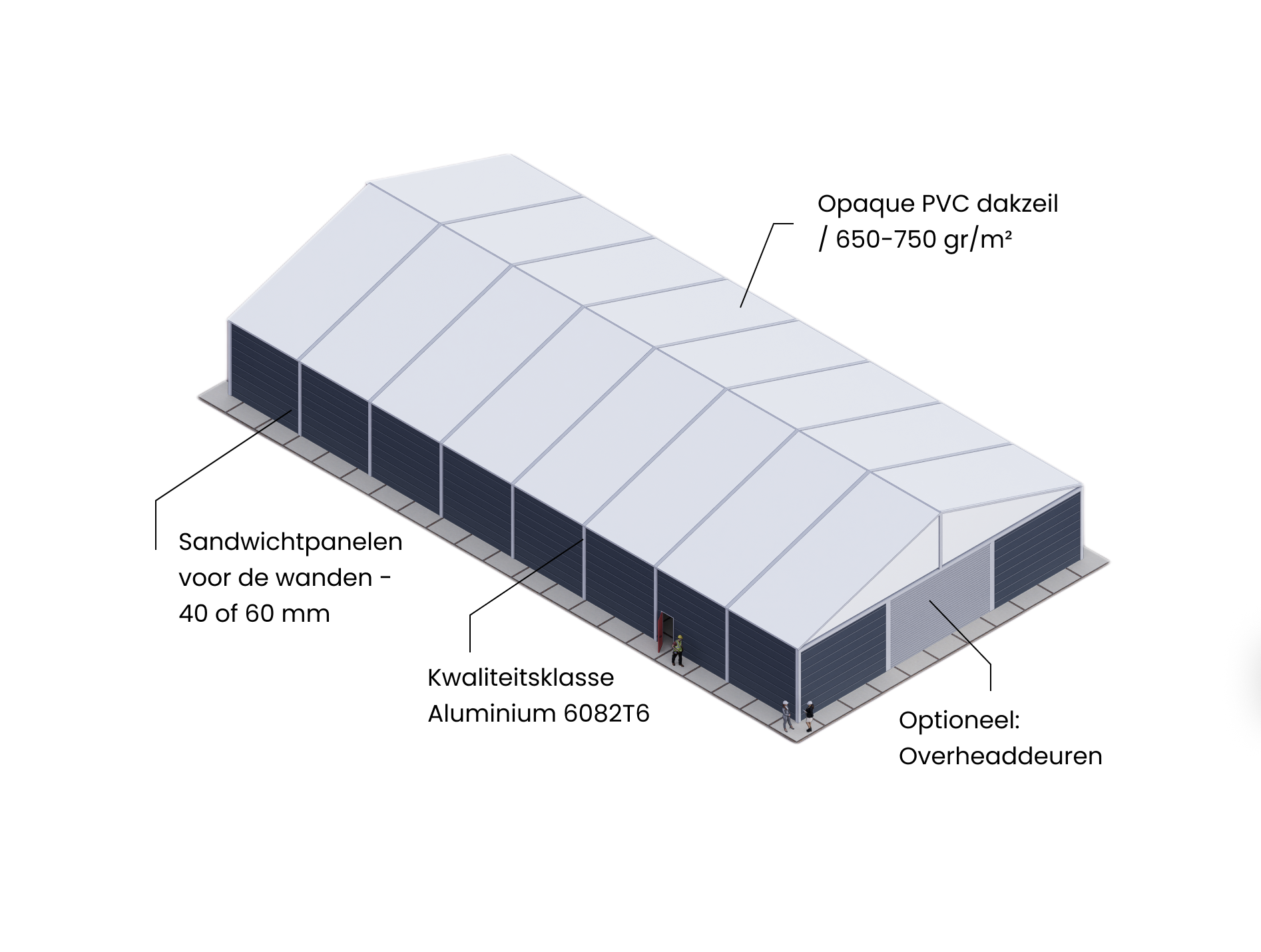 Ben je op zoek naar een langdurige oplossing? Een deels geïsoleerde tenthal kopen is ideaal wanneer je de tenthal voor meerdere jaren nodig hebt. Vanaf drie jaar gebruik is kopen vaak kostenefficiënter. Het is ook mogelijk om te leasen. De tenthal wordt volledig nieuw geleverd, afgestemd op jouw wensen, inclusief uitbreidingen zoals deuren of verlichting. Montage wordt door ons verzorgd, zodat je verzekerd bent van een veilige en professionele plaatsing.